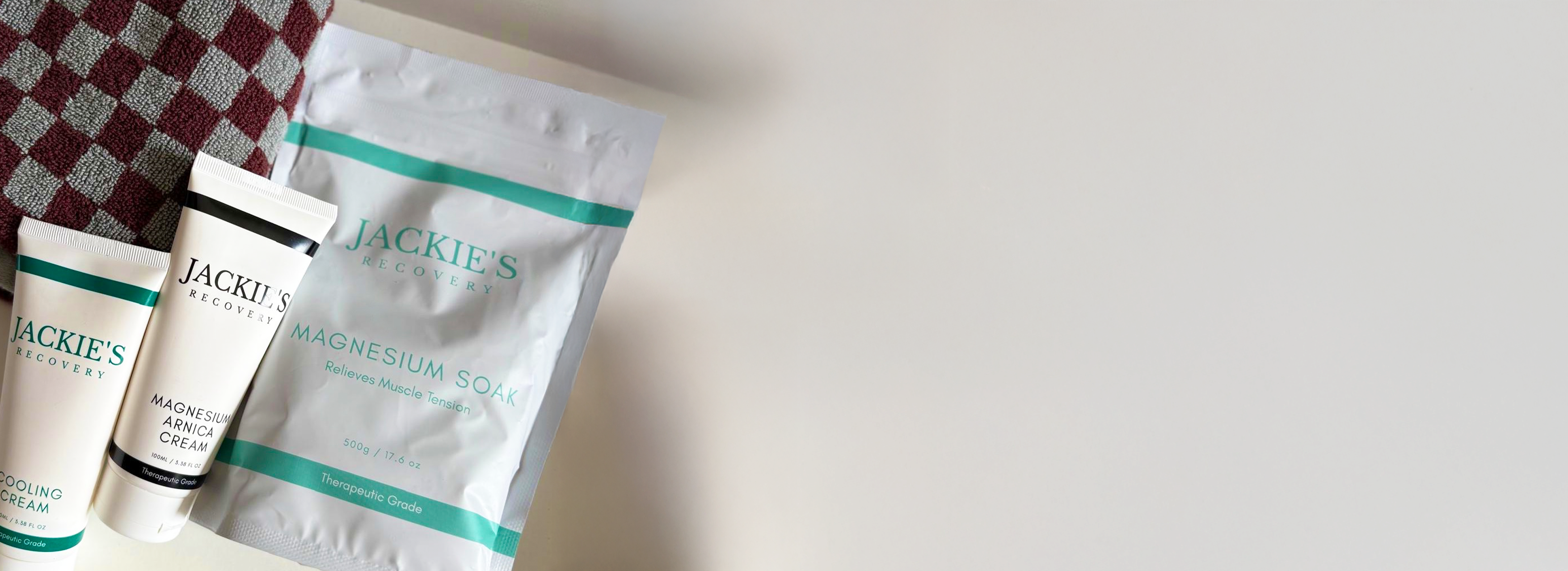 Over the years, Jackie noticed a gap in the market—she couldn’t find natural, high-quality recovery products that met her high standards for effectiveness, quality, and scent. After years of recommending magnesium and other natural remedies to her clients, she decided to create her own range of recovery products, formulated with therapeutic-grade ingredients designed to deliver real results.